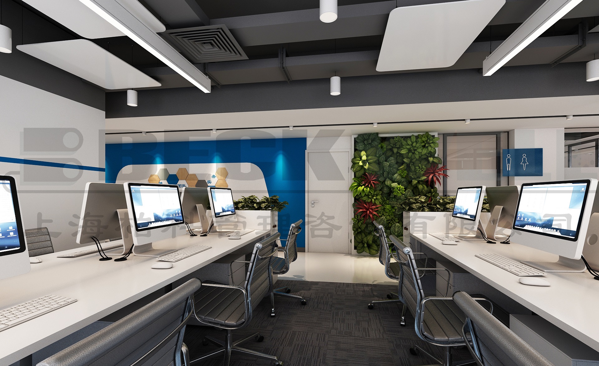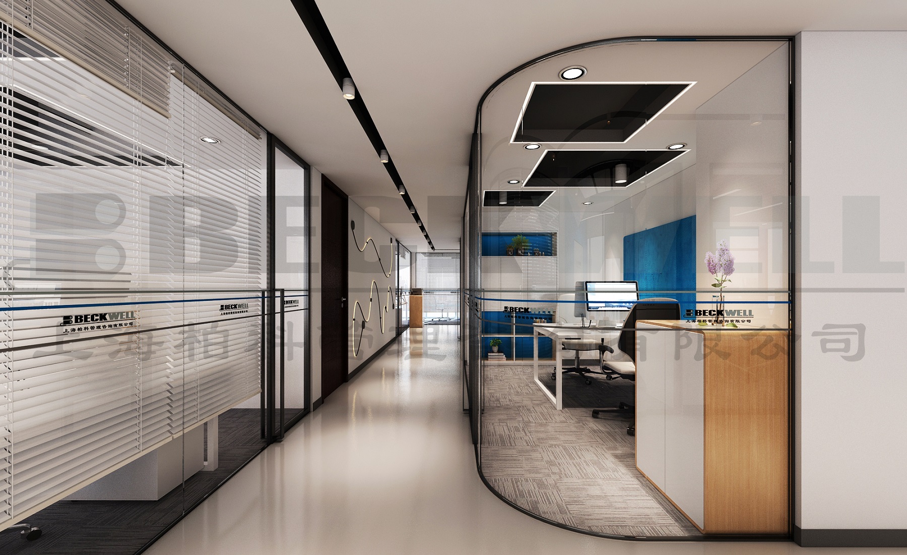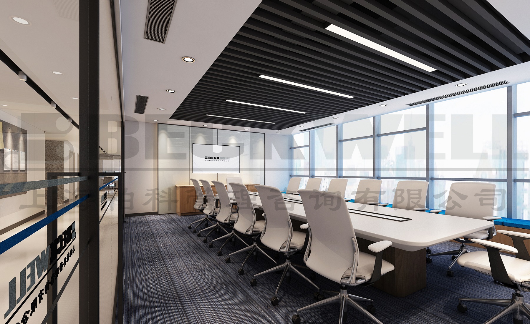 案例說明: 本案為上海管理咨詢公司自購整層辦公樓裝修項目,裝修面積2800平方,該項目強調空間的整體性,風格的統一性。根據不同功能對相應的房間立面作出處理方案,提倡自然簡潔和理性的規則,比例均勻、形勢新奇、材料搭配合理、收口方式干凈利落、維護省事。整個內部結構嚴密緊湊、空間穿插有序、圍護體各界面要素的虛實構成要比較明顯,經過虛實互換的空間形象,取得局部和整個空間的和諧。強調空間的完整性和高貴、典雅感。