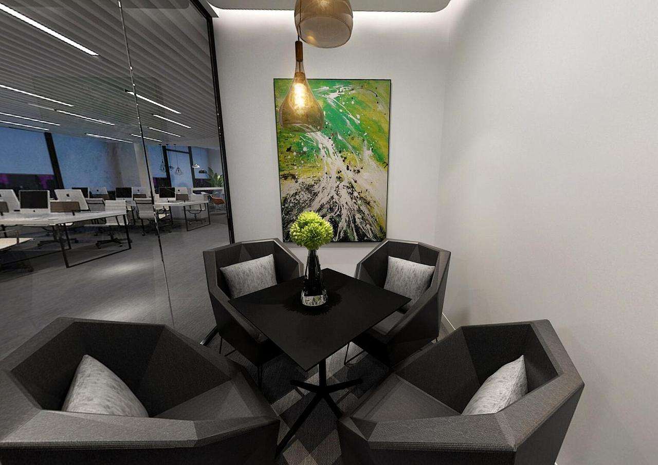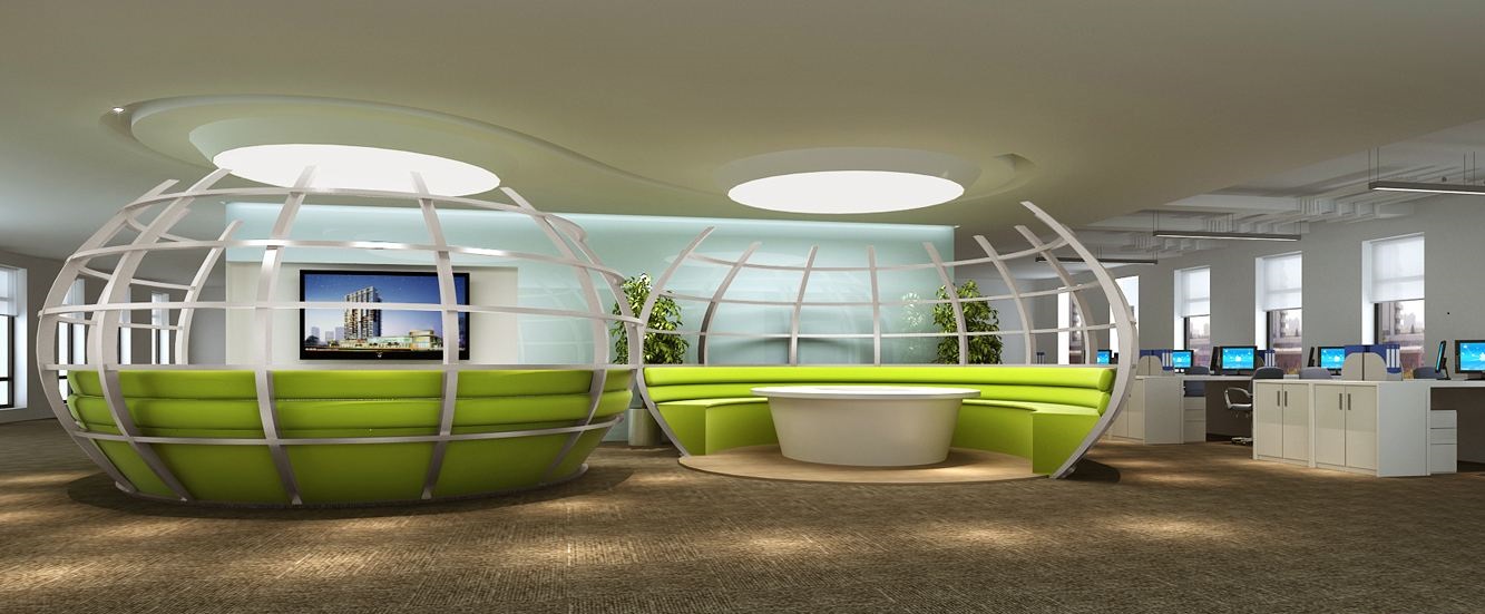 案例說明:本案設計為突顯建筑開間較舒適之優點,設計師特意設計了過道各柱體間鑲嵌不銹鋼條及玻璃幕墻上的磨砂條來點綴的裝修主題,同時,地面用拼花色帶打破,與方正而美觀的吊頂上下呼應;辦公室靠近走道的墻面,為將自然光透入走道,同時又加強其“靈透”感,采用清玻幕墻,幕墻上的磨砂條既打破了玻璃墻面的呆板,又提醒了行人幕墻的存在,防止無意識碰頭、沖撞等類似意外發生;為辦公室的后續私密性考慮,其清玻幕墻內掛以百葉窗遮擋既可。