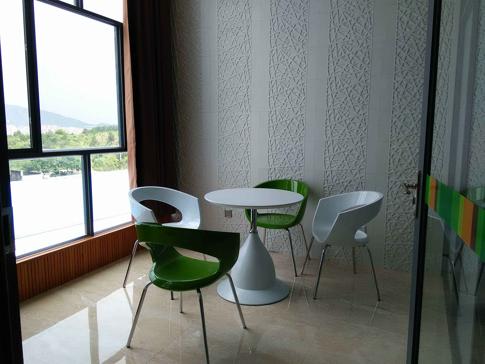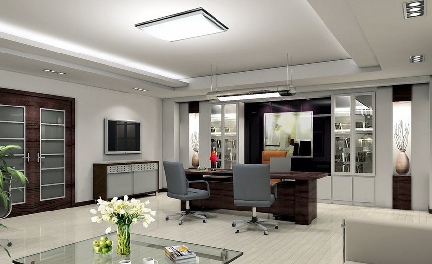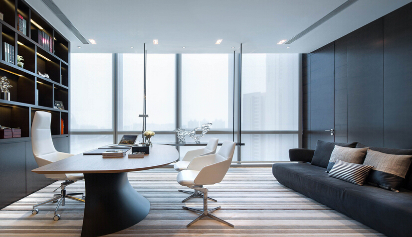 案例說明:本案圍繞其“靈透”,大量使用了玻璃、銀色系列及淺色調的潔凈材料,如玻璃幕墻、銀質鋁塑板、水晶白麻石材、?;u等,圍繞本案主題,構筑個性化空間,該色彩搭配除了清透、雅致、穩重、大氣之外,亦表現出一種力度感和效率感。滲透入貴機械制造企業之“清透感”,亦反襯企業之“柔美感”。以似乎矛盾的手法,又體現出古人之哲理“剛之極則柔,柔之極則剛”。老子說“上善若水”,該案則就其“善”滲透到每一個空間,極盡讓每個功能區都具有清透之靈性,盡顯靈動、清澈、時尚、大氣之空間氣韻。