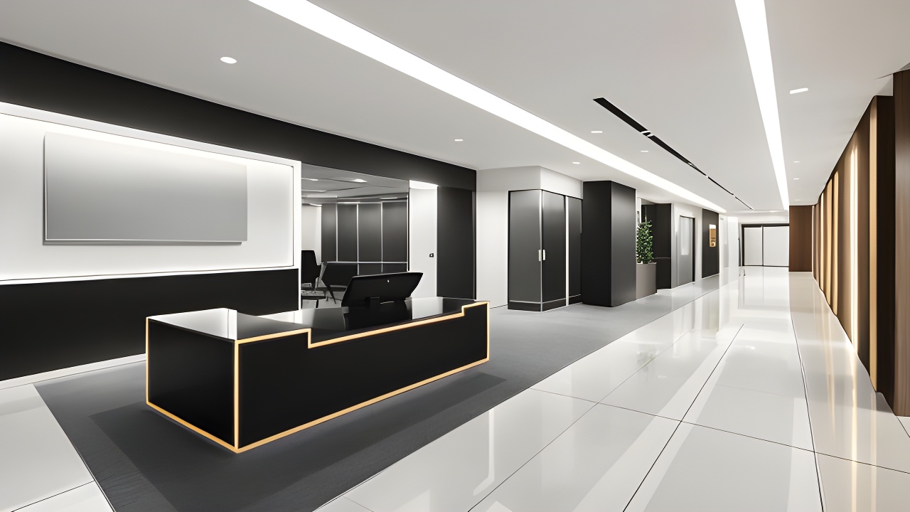金融精英的奢華領地:某金融機構則選擇了經典的黑白灰調,搭配精致的金屬裝飾,營造出專業而不失格調的高端商務氛圍。