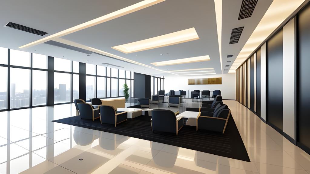 采用符合人體工程學的家具和環保材料,減少對自然資源的消耗和對環境的影響。同時,利用節能設備和智能控制系統降低能源消耗和碳排放量,實現綠色辦公。