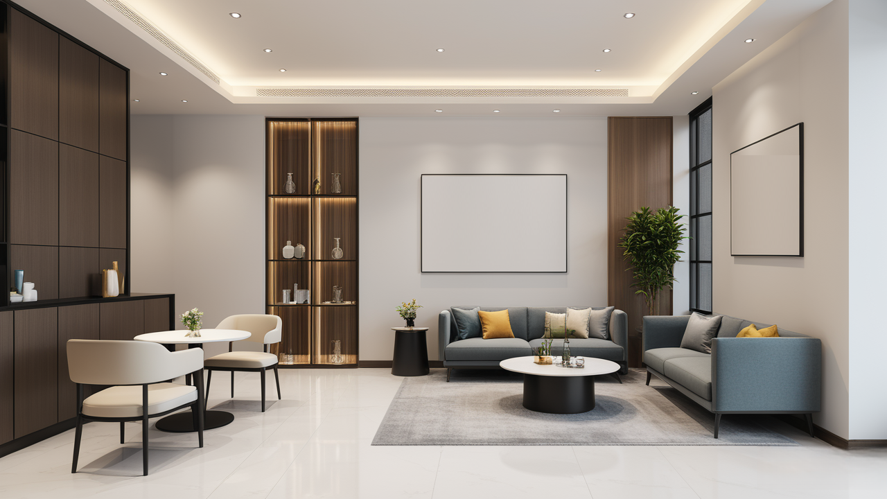 * 前臺/走廊: 特色隔斷如綠植墻、藝術屏風提升形象。